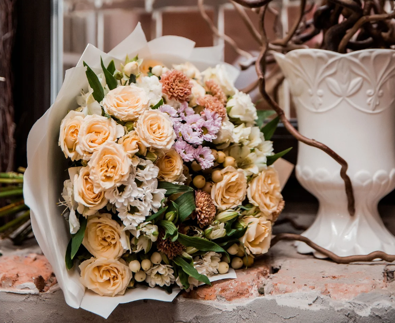 An elegant arrangement featuring pure white orchids and delicate ferns, perfect for any occasion.
